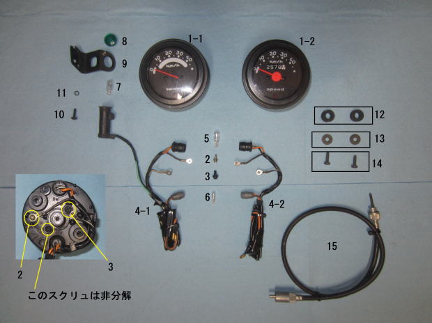 | 1-1 | 34120-22G00 | スピードメータ | 1 | セルなしカゴなしのK3 |